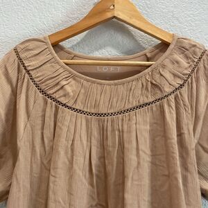 Loft Cutout Yoke Flutter Sleeve Mixed Media Top in Rye Size Medium