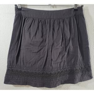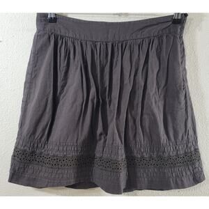 Loft Dark Brown Pleated A Line Eyelet Hem Detail Mini Skirt 6P Lightweight Soft