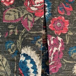Loft Dark Floral Metallic Pleated Skater Skirt Sz 4 Dark Cottage Fairy Grunge. Dark gray background with metallic threaded throughout. Gorgeous blue and burgundy floral print. Zip closure. Lined. Pleated in front, flat in back. Above knee length.