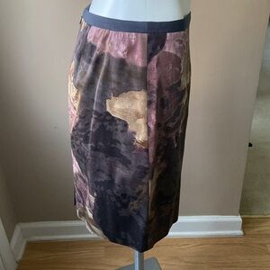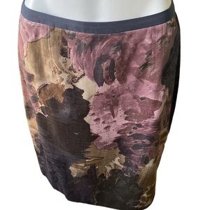 Moody dark floral skirt with black ribbon detail along the waist. It is not lined and in great condition 👍🏾. It barely looks worn! The fabric has a soft feel and textured at the same time a little like a grosgrain ribbon. There is a small slit up the back to allow movement. It has a zipper and while it is a pencil skirt it is a wee bit on the short side, it’s 20 inches long. It is also 15 3/4 inches in the waist. Overall very cute, versatile, and perfect for fall and winter. Smoke free clean home.