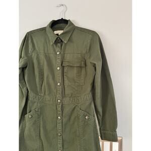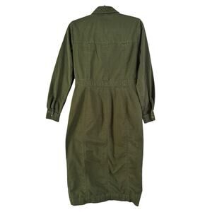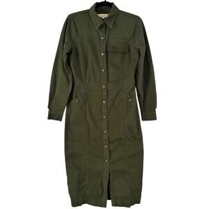 Loft Dark Green Snap Button Long Sleeve Denim Midi Dress Women’s Size 4