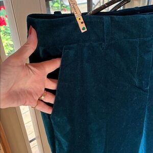 NWOT...Elegant dark teal velvet pants. Perfect for a stylish look and extra warmth. Check out all pics for details and approximate measurements.