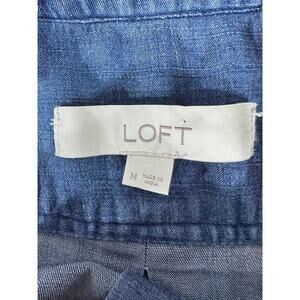 Item: Loft Denim Chambray Button Up Shirt Size Medium Chest Pockets Ruffle Neck