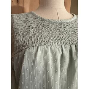 Loft | Dot Smocked Flutter Sleeve Swing Top Seafoam Green | Size Large