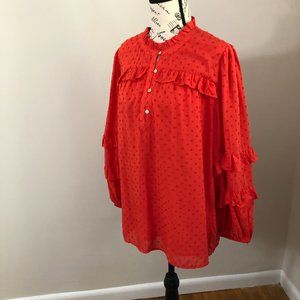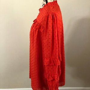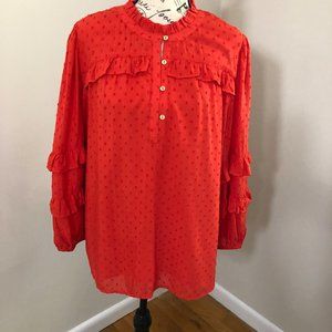 Loft Dot Textured Ruffled Long Sleeve Top Size L NWT.