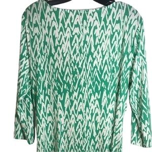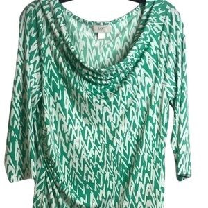 Loft Draped Collar Green and White Dress Size L