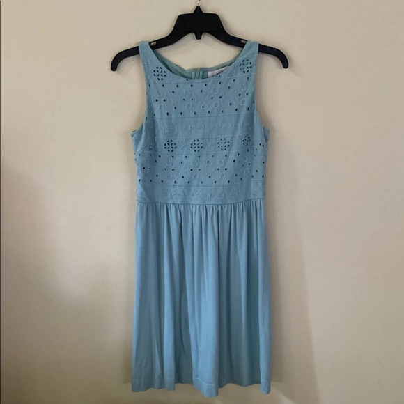 Loft dress with design on top, very soft with zipper in back, pretty blue-green color, perfect for spring, size 4Petite