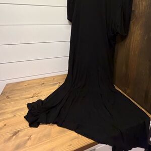 LOFT Puff Sleeve Flounce Dress Size: 12 Color: Black
