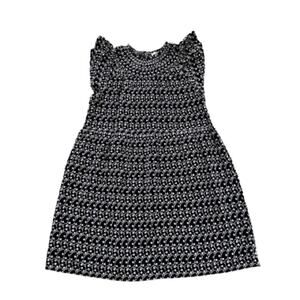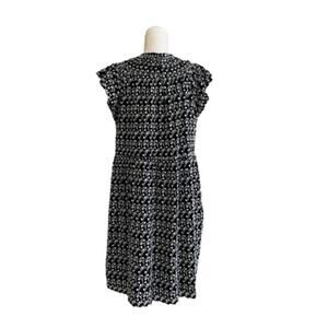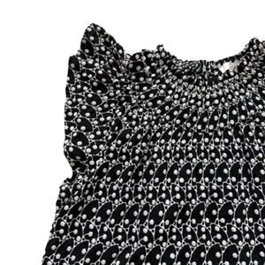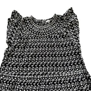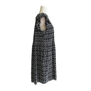 Loft Black White Eyelet Smocked Yoke Neck Ruffle Sleeve Lined Swing Summer Dress Petite