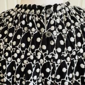 Loft Dress Black White Eyelet Embroidered Smocked Yoke Ruffle Sleeve Size LP NEW