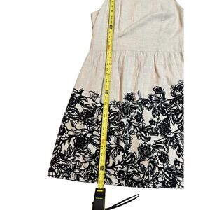 Loft Dress Linen Cotton Size 12 Beige with Black Border
