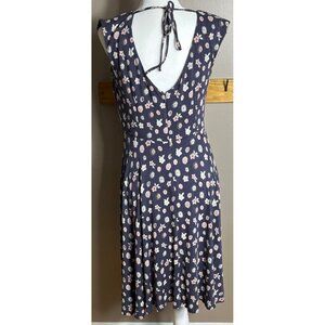 Loft Dress Rayon Knit Grayish Floral Fit & Flare Swingy Midi Comfortable Women M