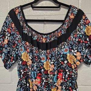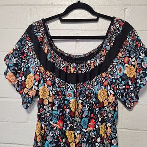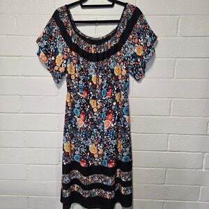 Loft Dress Size M Petite Black Floral Off Shoulder