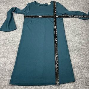 Loft Dress Womens Extra Small Teal Blue Green Long Bell Sleeve Jersey Knit Rayon Blend. Very Good Pre-owned condition. No found flaws or stains. See photos for measurements. Ships quickly from smoke-free home.