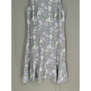 Loft Dress Womens 4 Gray Floral Green Mini Boho Cottagecore Bohemian Retro