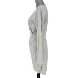 Loft Dress Women's 8 Ivory Black Stripe Cotton Faux Wrap Tie Waist Beach Coastal