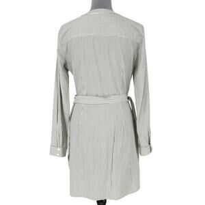 Loft Dress Womens 8 Ivory Black Stripe Cotton Faux Wrap Tie Waist Beach Coastal