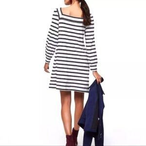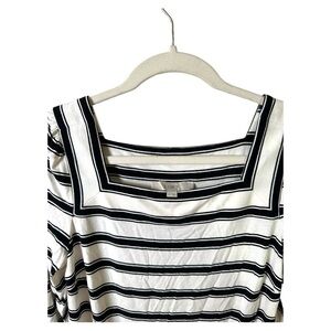 Loft Dress Womens S Petite Long Sleeve Square Neck Striped Black White Stretch
