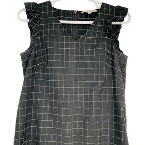 Loft Dress Womens Size 8 Check Plaid Ruffle Cap Sleeve Preppy Career Black White