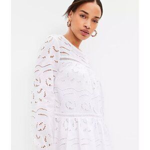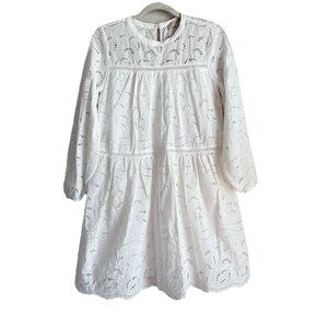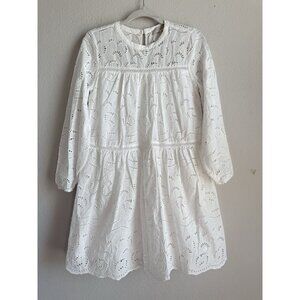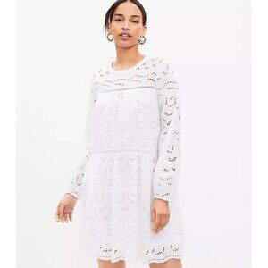 Loft Dress Women’s Size XS White Eyelet Lined Swing Cotton Long Sleeve Boho NEW