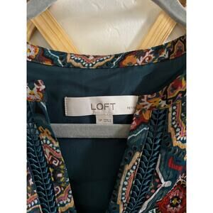 Loft Dress Women's Small Petite Tapestry Ruffle V Neck Midi Bohemian