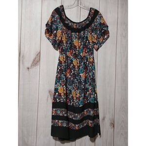 Loft Dress Ladies Medium Black‎ Floral Peasant