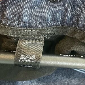 Medium blue wash, double button and zipper closure, belt loops (some doubled), 4 pockets, back pockets with flap and hidden button, colors may vary due to lighting, good used condition, size 8L