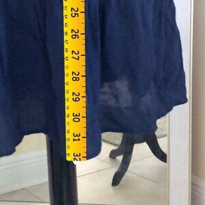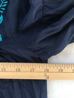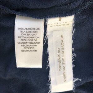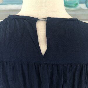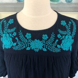 A Loft Midi Dress Size Medium Navy W/Aqua Floral Embroidered Trim and Ruffle Hem