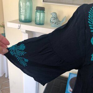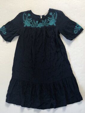 Loft Embroidered Boho Ruffle Dress Medium