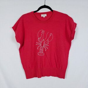 Loft Embroidered Lobster Sweater Tee Womens L Red Fisherman Coastal Nautical