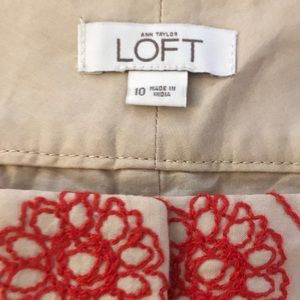 Loft embroidered shorts. Size 10. Red orange embroidery. Gently used