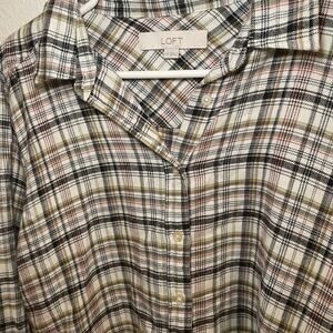 Loft Everyday Shirt in Winter Frost Plaid Flannel Medium Long Sleeve Fall Top