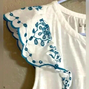 Loft Eyelet Flutter Henley Mixed Media Spring/Summer Top Size M Good preowned condition