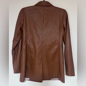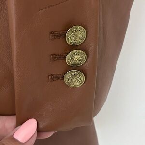 Loft Faux Leather Double Breasted Brown Blazer with Gold Buttons Size 0 NWOT