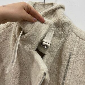 Loft Faux Shearling Aviator Moto Coat Jacket Grey Sand Heavy Weight Buckle XL