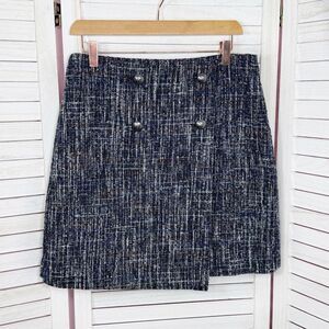 Loft Faux Wrap Tweed A Line Skirt Back Multi 4 Office Preppy Nautical