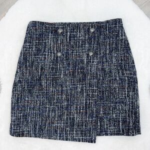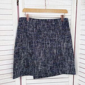 Loft Faux Wrap Tweed A Line Skirt Black Multi