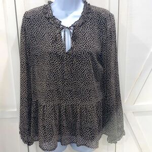 Loft Floral Blouse Black White Long Sleeve Key Hole Detail Size Small