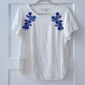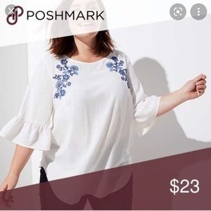 Floral Embroidered Ruffle Cuff Top. Worn once. Bu for and save! Offers are welcome #box23