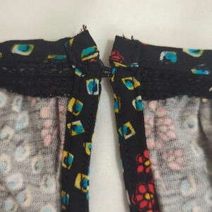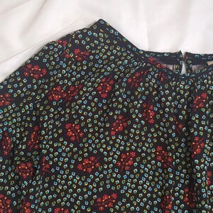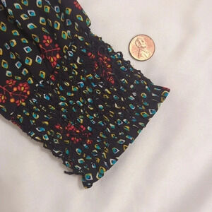 Loft Floral Lace Trim Smocked Cuff Blouse, Color Black/Turquoise/Red Size SP
