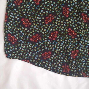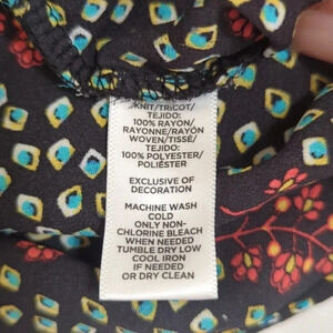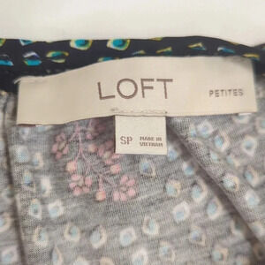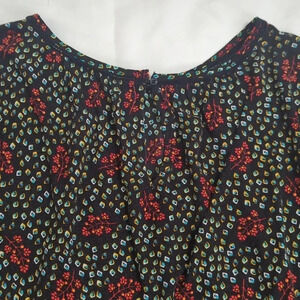 Loft Floral Lace Trim Smocked Cuff Blouse, Color Black/Turquoise/Red Size SP