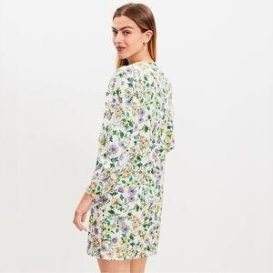 Loft Floral Linen-Blend Long Sleeve Shift Dress Sz.0 NWT