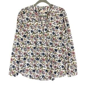 Loft Floral Long Sleeve Peasant Blouse Semi Sheer Size M