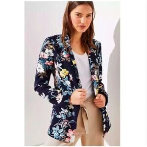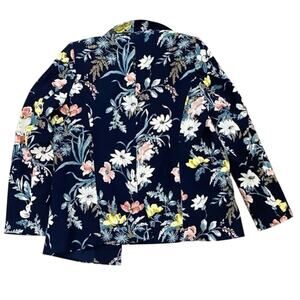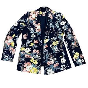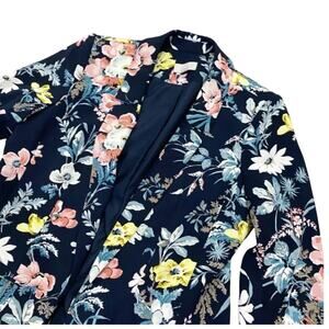 Loft Floral Open Front Blazer 2 Navy Blue Pink White Jacket Romantic Academia