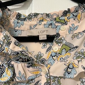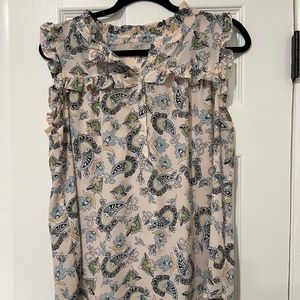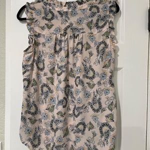 Loft - Floral Paisley Ruffle Henley Shell. Size Medium. Excellent Used Condition.