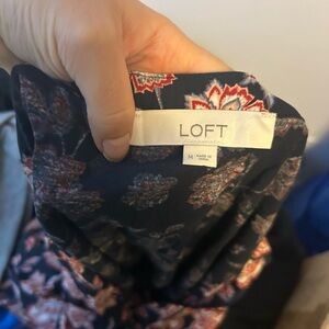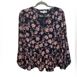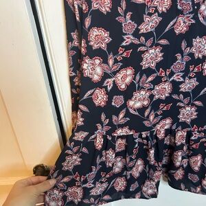 Pre owned excellent condition. Worn once. Gorgeous navy blue, red and white floral peplum blouse that ties at the neck. Such a pretty style. Womens size medium.