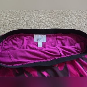 Chic skirt with vibrant pink floral pattern on a black background. Perfect for any occasion.