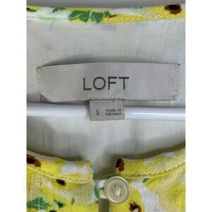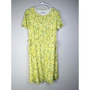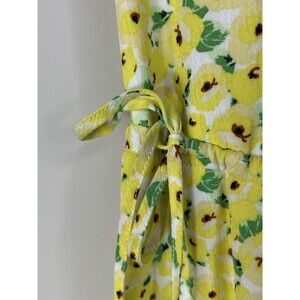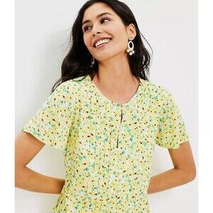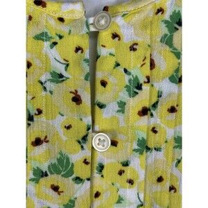Loft Floral Pintucked Pleated Yellow Side Tie Button Flutter Sleeves Dress Sz Small