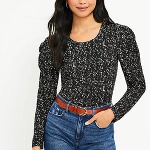 Loft Floral Popcorn Knit Long Twist Sleeve Top Blouse Size S NWOT