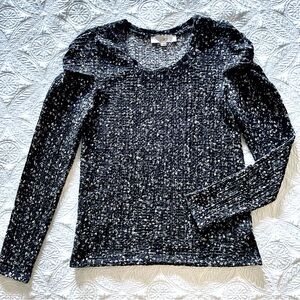 Loft Floral Popcorn Knit Long Twist Sleeve Top Blouse Size S NWOT